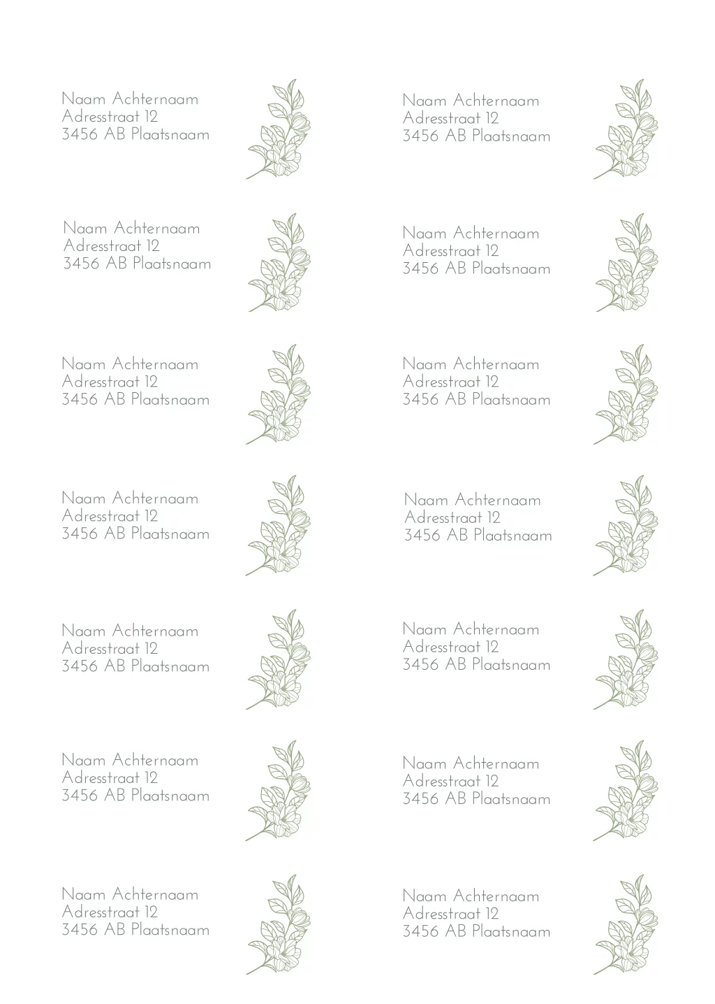Maak zelf de adresstickers voor op de envelop van jullie trouwkaart! De adresstickers hebben een formaat van 97x34 mm en zijn afgewerkt met ronde hoeken. Er zitten 14 stuks op een vel. Deze adresstickers horen bij de trouwhuisstijl Garden Flowers.
