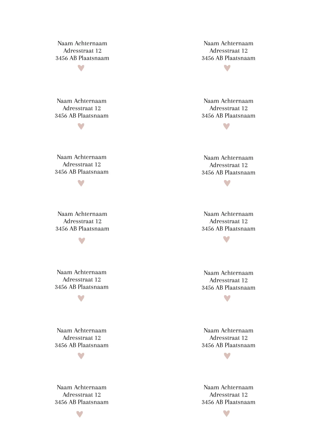 Maak zelf de adresstickers voor op de envelop van jullie trouwkaart! De adresstickers hebben een formaat van 97x34 mm en zijn afgewerkt met ronde hoeken. Er zitten 14 stuks op een vel.