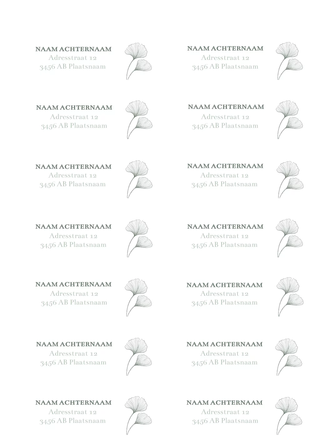 Adresstickers voor bij de trouwkaart. Stijl: Ginkgo Love