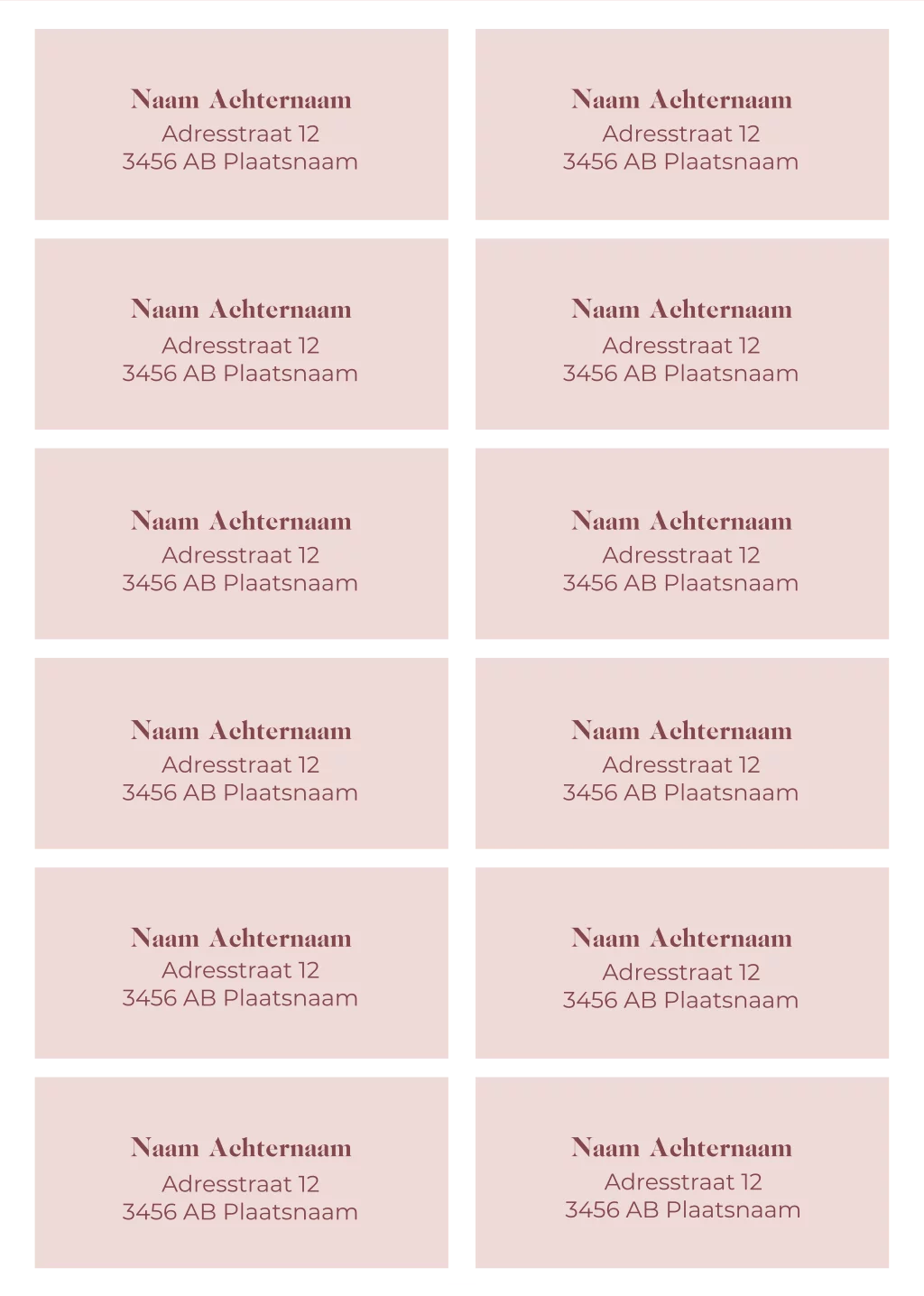 Maak zelf de adresstickers voor op de envelop van jullie kaart! De adresstickers hebben een formaat van 97x45 mm. Er zitten 12 stickers op een vel. Deze adresstickers horen bij de trouwhuisstijl Modern Love.