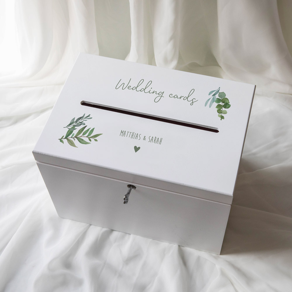 Ontwerp zelf een mooie enveloppendoos voor op jullie bruiloft. Zo kunnen de bruiloftsgasten hun wensen en envelop met geld veilig achterlaten in deze houten enveloppenkist. Formaat: 20 x 29 x 22 cm, gleuf 21 cm.| Totaalprijs: 0 |
