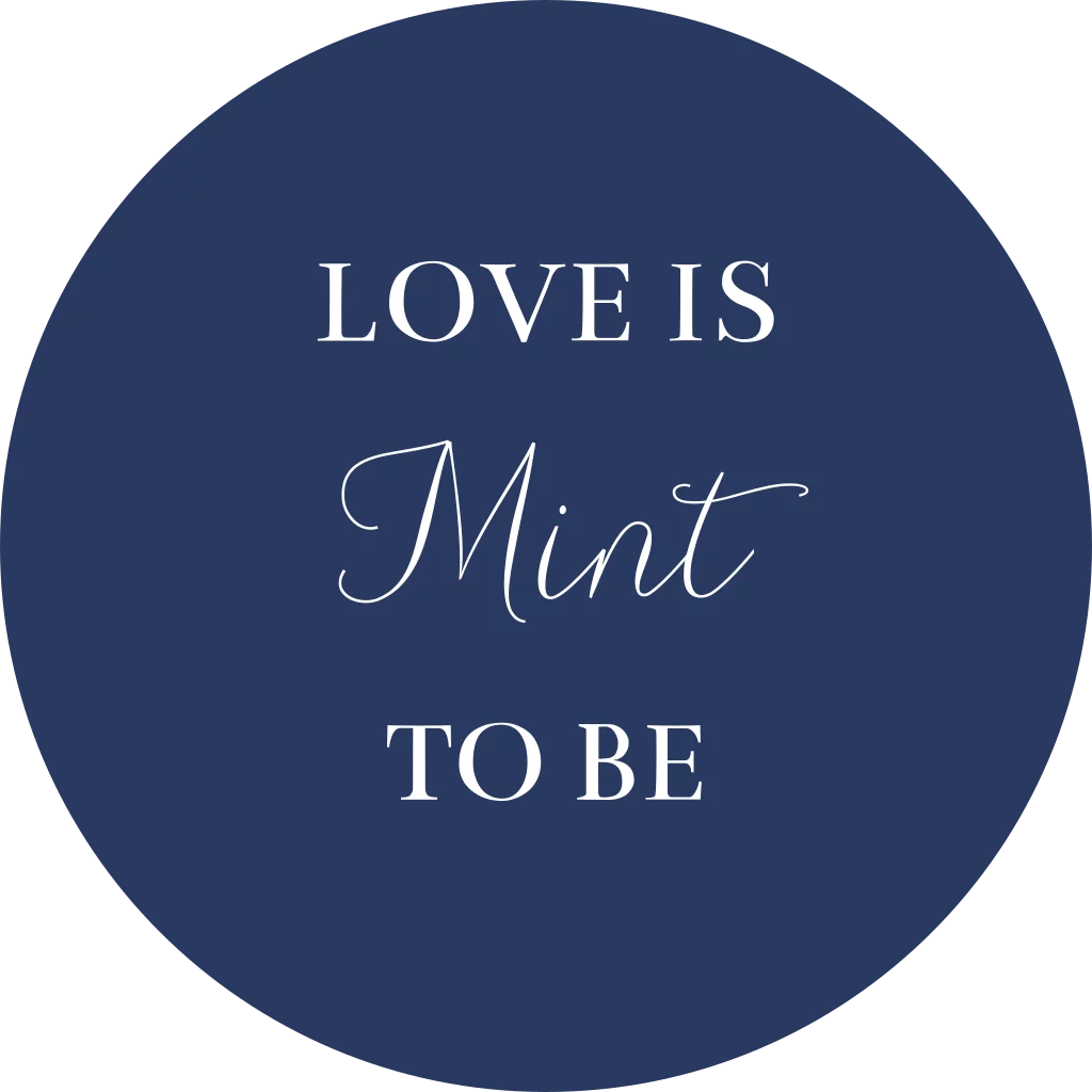 Deze sluitsticker met de tekst Love is mint to be kan je gebruiken om op een bedankje met bijvoorbeeld pepermuntjes te plakken. Zo heb je een super leuk bedankje voor jullie gasten. Deze sticker past bij de trouwhuisstijl Classic blue.