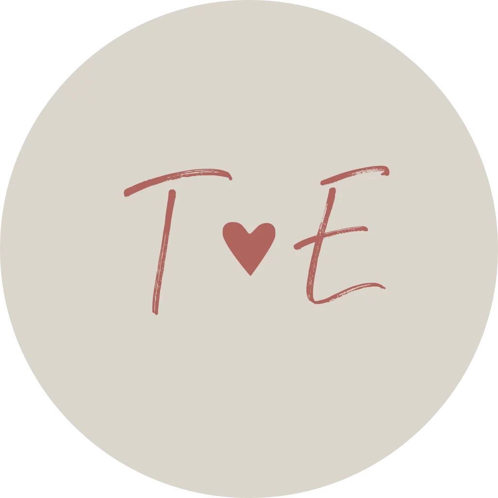 Sluitsticker trouwkaart Thomas & Esther beige initialen sierlijk