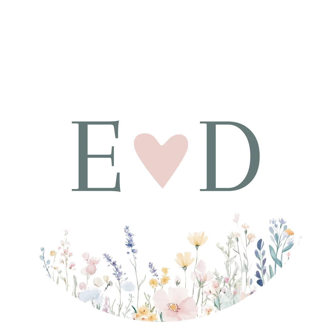 Een witte sluitsticker met trouwlogo en bloemen voor bij jullie trouwkaart. Met een sluitzegel kun je de envelop van jullie uitnodiging in stijl sluiten!