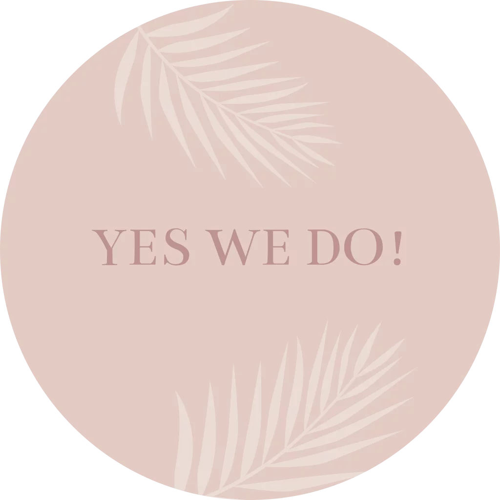 Ontwerp je eigen sluitsticker voor op de envelop in de stijl van de trouwkaart! Deze sticker heeft een oudroze achtergrond, botanische takjes en de tekst: yes we do. Pas de kleuren van de sticker zelf naar wens aan.