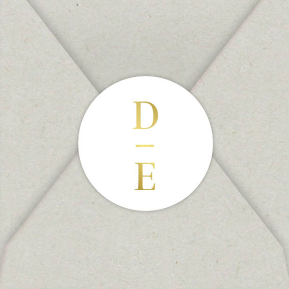 Een witte sluitsticker met initialen in goudfolie voor bij jullie trouwkaart. Met een sluitzegel kun je de envelop van jullie uitnodiging in stijl sluiten!