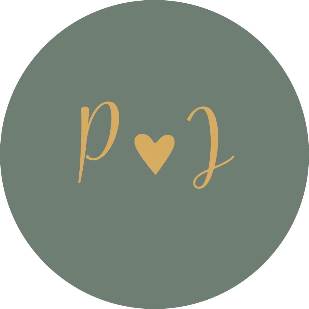 Sluitsticker trouwkaart Peter & Jessica groen initialen goud hartje