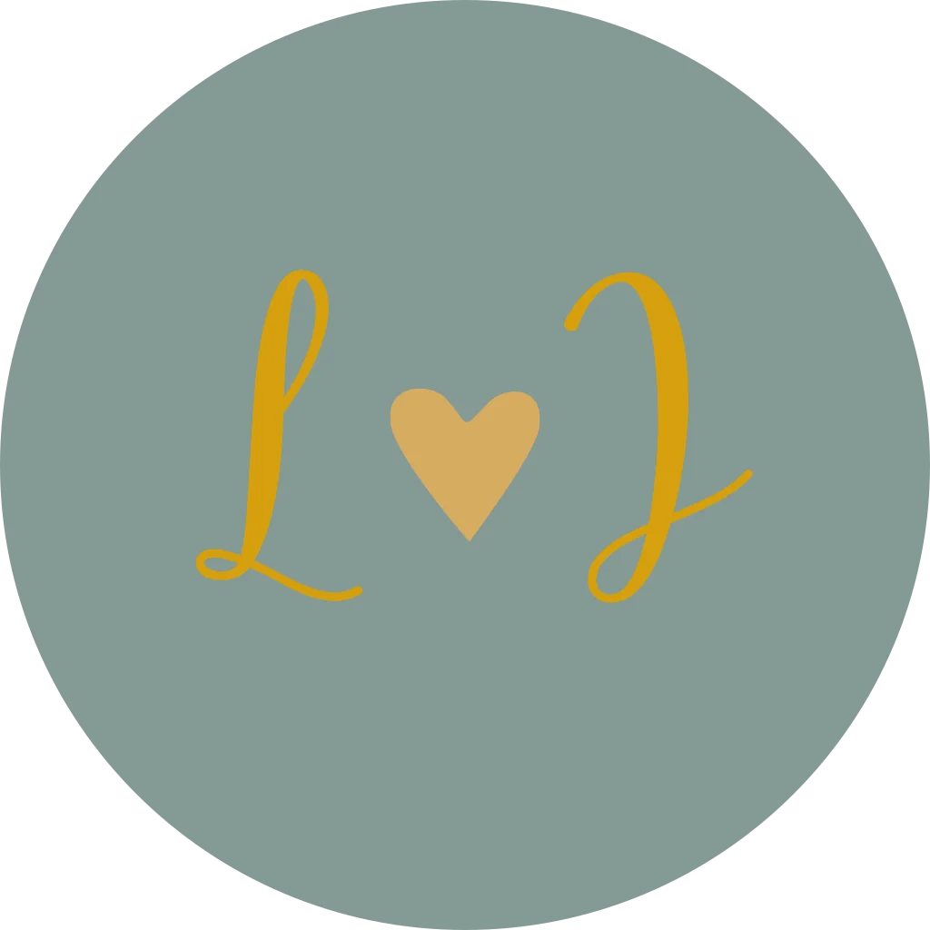 Sluitsticker trouwkaart Lucas & Julia groen initialen hartje