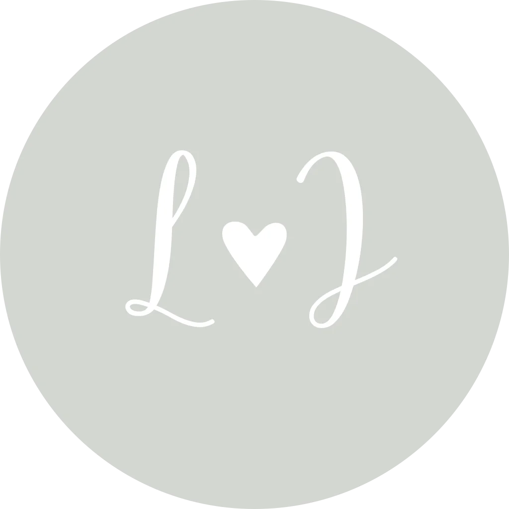 Sluitsticker trouwkaart groen Lucas & Julia sierlijk initialen