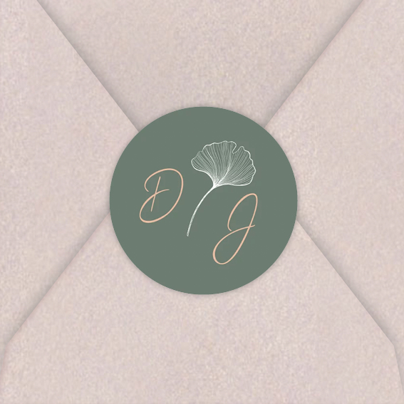 Ontwerp je eigen sluitsticker voor op de envelop in de stijl van de trouwkaart! Deze sticker heeft een groene achtergrond en een mooi botanisch trouwlogo. Pas de kleuren van de sticker zelf naar wens aan.| Totaalprijs: 0 |