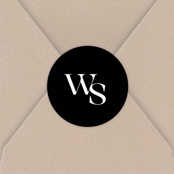 Ontwerp je eigen sluitsticker voor op de envelop in de stijl van de trouwkaart! Thema: Black & White