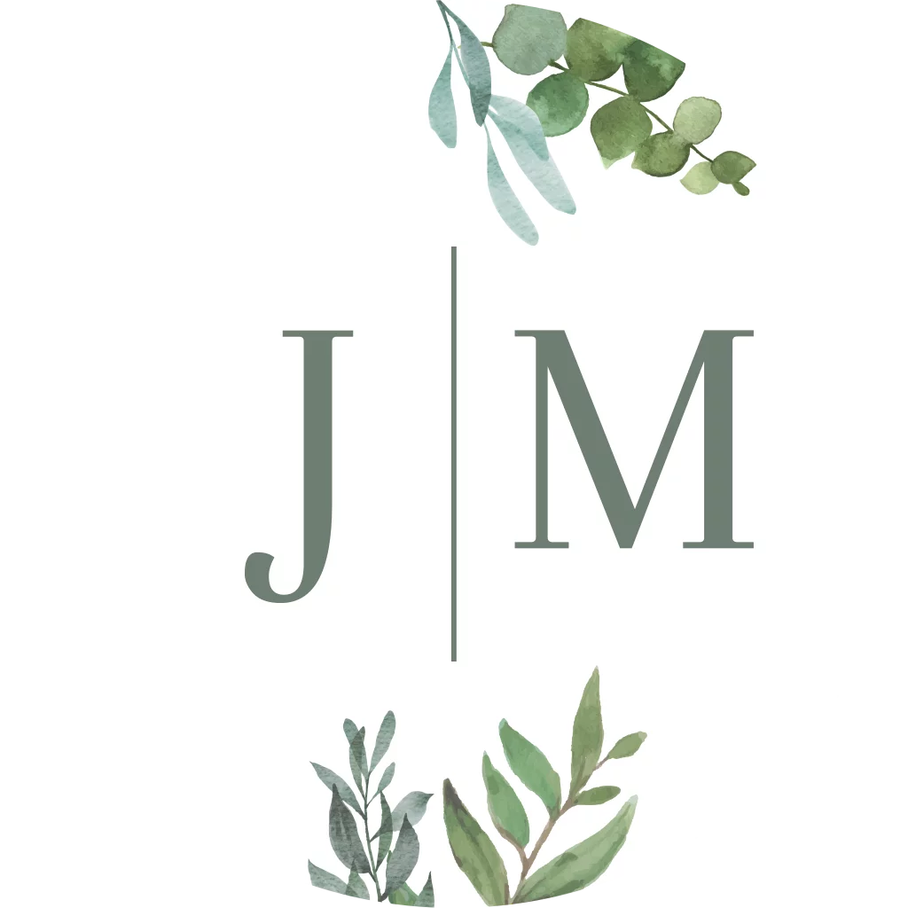 Sluitsticker trouwkaart Jessica & Martin klassiek wit groen blaadjes