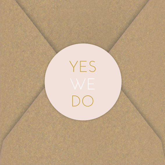 Ontwerp je eigen sluitsticker voor op de envelop in de stijl van de trouwkaart! Deze sticker heeft een lichtroze achtergrond met de tekst: yes we do. Pas de kleuren van de sticker zelf naar wens aan.