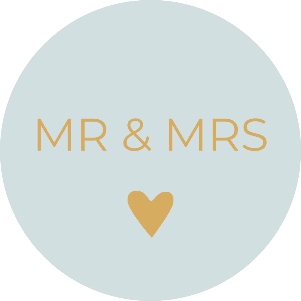 Ontwerp je eigen sluitsticker voor op de envelop in de stijl van de trouwkaart! Deze sticker heeft een mintgroene achtergrond met de tekst: mr & mrs. Pas de kleuren van de sticker zelf naar wens aan.