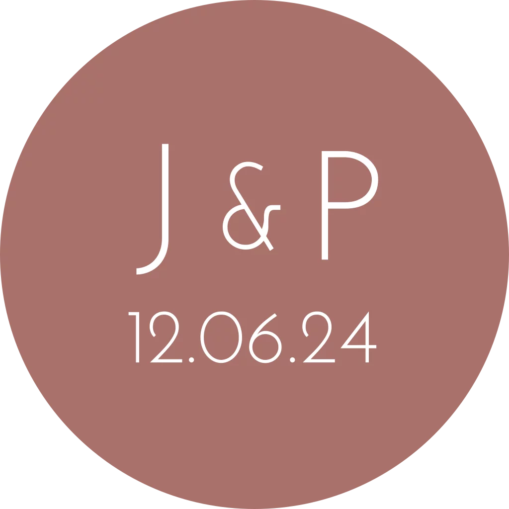 Ontwerp je eigen sluitsticker voor op de envelop in de stijl van de trouwkaart! Deze sticker heeft een roest rode achtergrond en de initialen en trouwdatum van het bruidspaar. Pas de kleuren van de sticker zelf naar wens aan.
