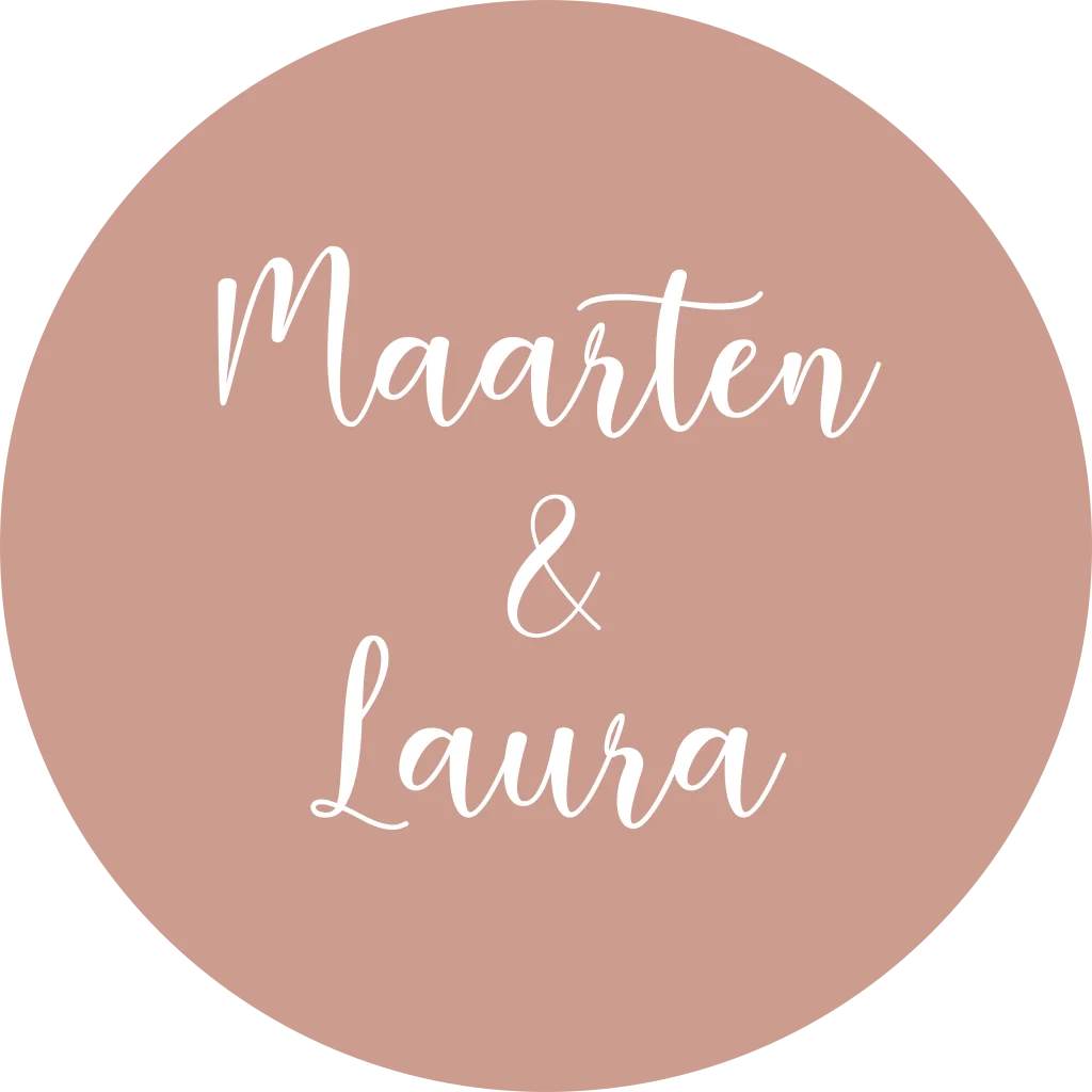 Sluitsticker trouwkaart Maarten & Laura oud roze namen