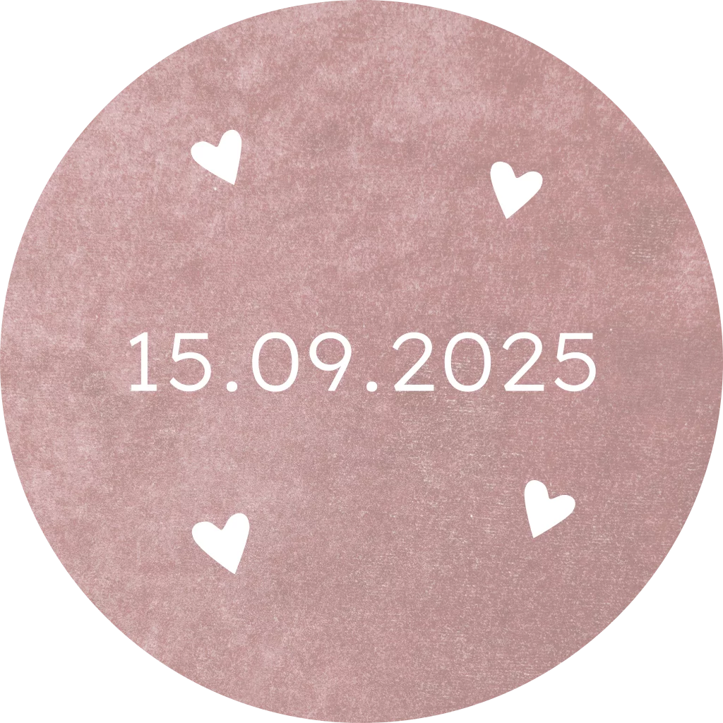Ontwerp je eigen sluitsticker voor op de envelop in de stijl van de trouwkaart! Deze sticker heeft een oud roze velvet look achtergrond met de trouwdatum en hartjes. Pas de kleuren van de sticker zelf naar wens aan.