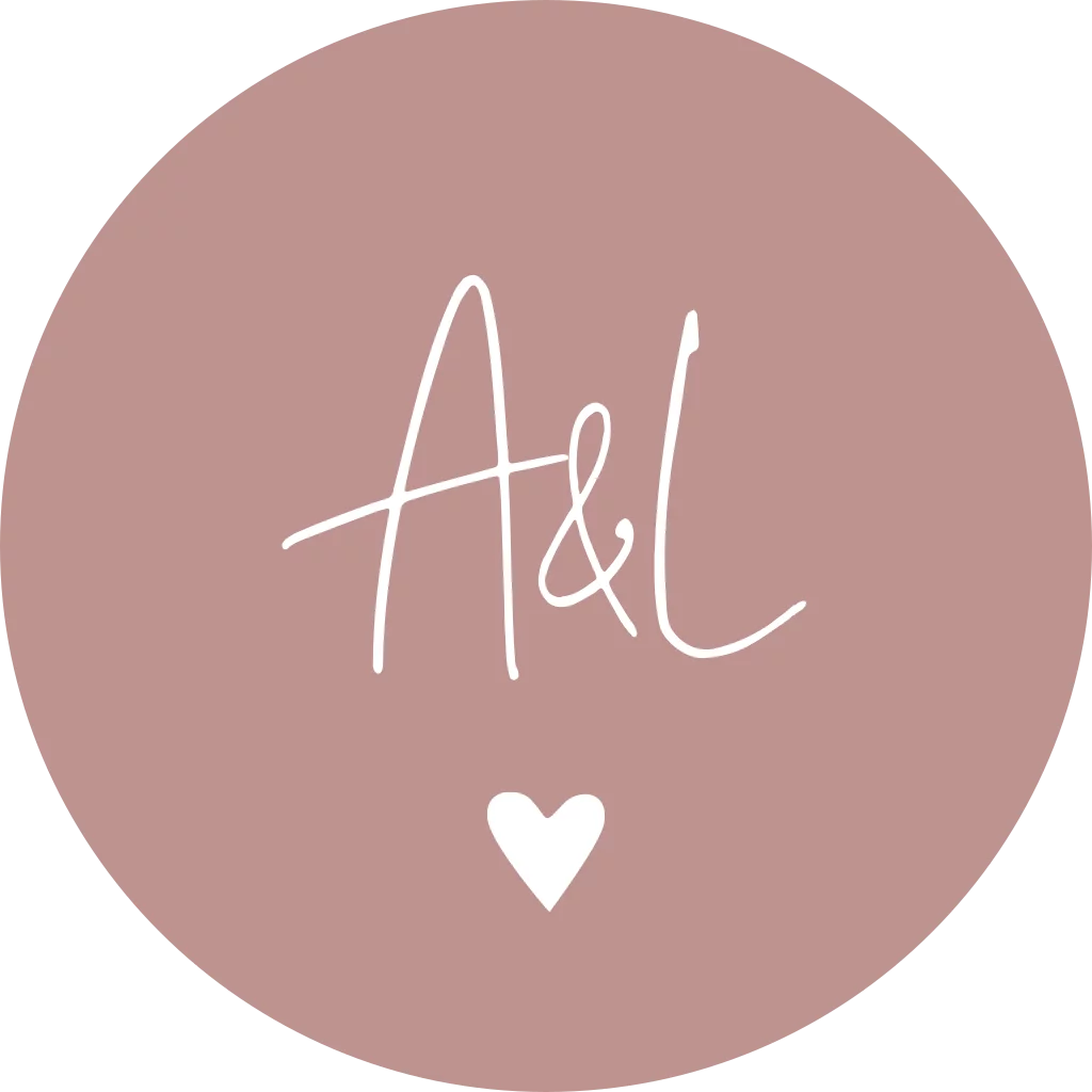 Sluitsticker trouwkaart Alex & Lotte oudroze initialen hartje wit