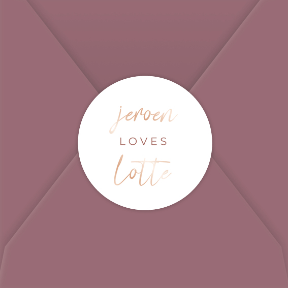 Een prachtige sluitzegel met jullie namen in glimmende rosefolie. Deze sluitzegel past bij een trouwkaart uit de collectie, zodat alles voor jullie uitnodiging perfect bij elkaar past!