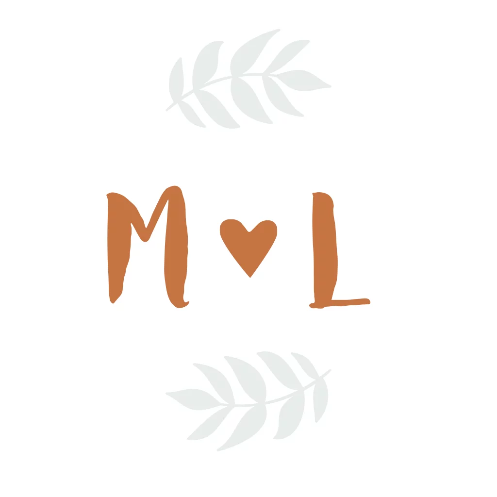 Ontwerp je eigen sluitsticker voor op de envelop in de stijl van de trouwkaart! Deze sticker heeft een witte achtergrond met een botanische look en de initialen van het bruidspaar. Pas de kleuren van de sticker zelf naar wens aan.