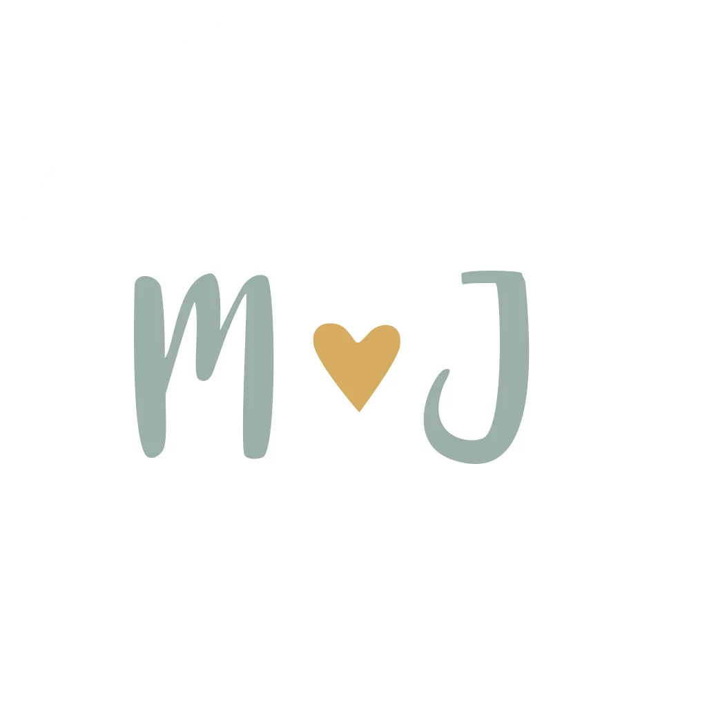 Sluitsticker trouwkaart wit Matthijs & Joan initialen groen hartje
