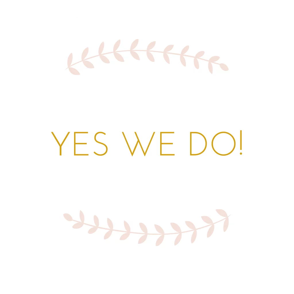 Een witte sluitsticker met roze takjes en de tekst: yes we do voor bij jullie trouwkaart. Met een sluitzegel kun je de envelop van jullie uitnodiging in stijl sluiten!
