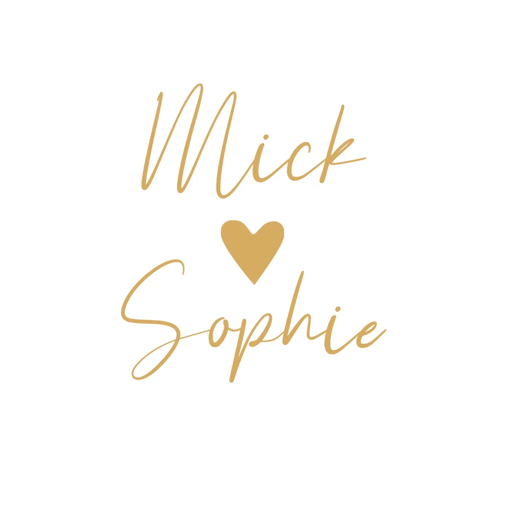 Ontwerp je eigen sluitsticker voor op de envelop in de stijl van de trouwkaart! Deze sticker heeft een witte achtergrond met de namen van het bruidspaar in een sierlijk gouden lettertype. Pas de kleuren van de sticker zelf naar wens aan.