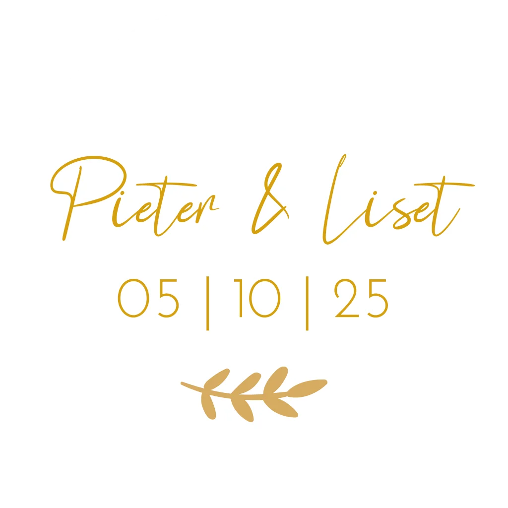 Ontwerp je eigen sluitsticker voor op de envelop in de stijl van de trouwkaart! Deze sticker heeft een witte achtergrond met een sierlijk lettertype, trouwdatum en takje. Pas de kleuren van de sticker zelf naar wens aan.