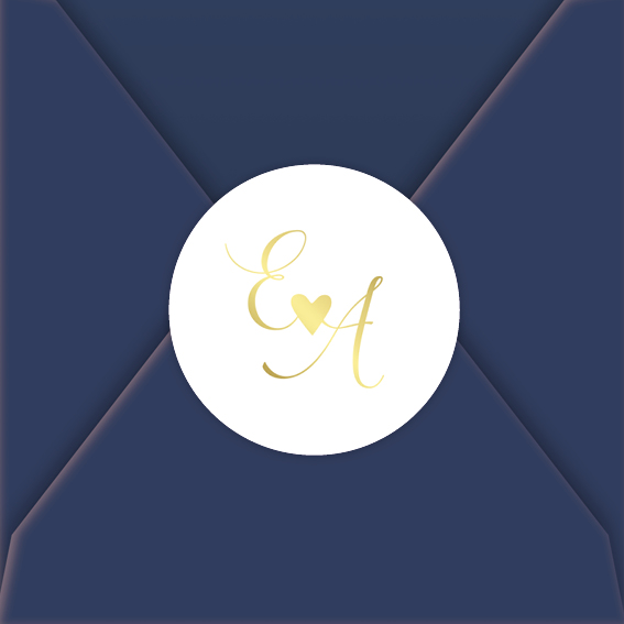 Sluitsticker voor bij de trouwkaart met witte watercolor achtergrond en een trouwlogo met hartje in goudfolie. Vul jullie eigen initialen in en je hebt een prachtig trouwlogo!| Totaalprijs: 0 |