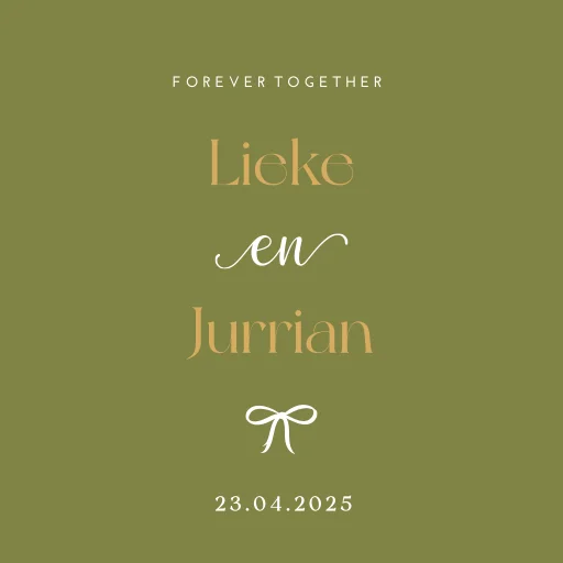 Een leuk tegeltje in dezelfde stijl als jullie trouwkaart. Het tegeltje heeft het formaat 15x15 cm en is nog helemaal naar wens aan te passen. Passend bij de trouwhuisstijl Chic Bow.