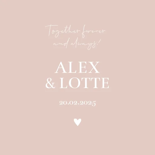Een leuk tegeltje in dezelfde stijl als jullie trouwkaart. Het tegeltje heeft het formaat 15x15 cm en is nog helemaal naar wens aan te passen. Passend bij de trouwhuisstijl Dusty Pink.