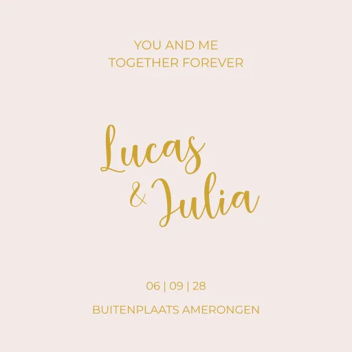 Een leuk tegeltje in dezelfde stijl als jullie trouwkaart. Het tegeltje heeft het formaat 15x15 cm en is nog helemaal naar wens aan te passen. Passend bij de trouwhuisstijl Golden Lettering.