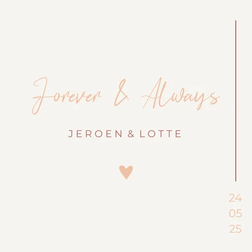 Een leuk tegeltje in dezelfde stijl als jullie trouwkaart. Het tegeltje heeft het formaat 15x15 cm en is nog helemaal naar wens aan te passen. Passend bij de trouwhuisstijl Romantic Rose.
