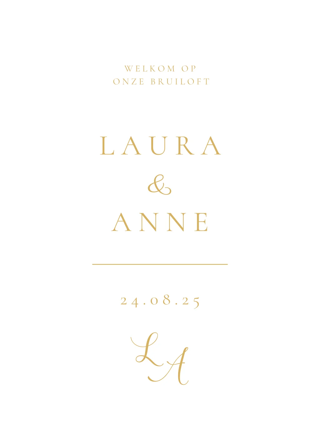 Ga zelf aan de slag met een welkomstbord voor jullie bruiloft! Je kunt het bord in dezelfde kleuren en lettertypes opmaken als jullie eigen trouwkaart. Dit trouwbord heeft een bijzondere vorm.