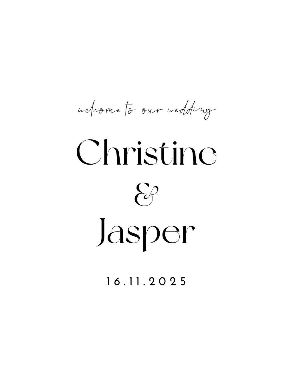 Klassiek en modern welkomstbord met golfvorm met chique zwarte letters. Pas het bruiloftsbord nog naar wens aan in de stijl van jullie bruiloft, zodat alles mooi bij elkaar past.| Totaalprijs: 0 |