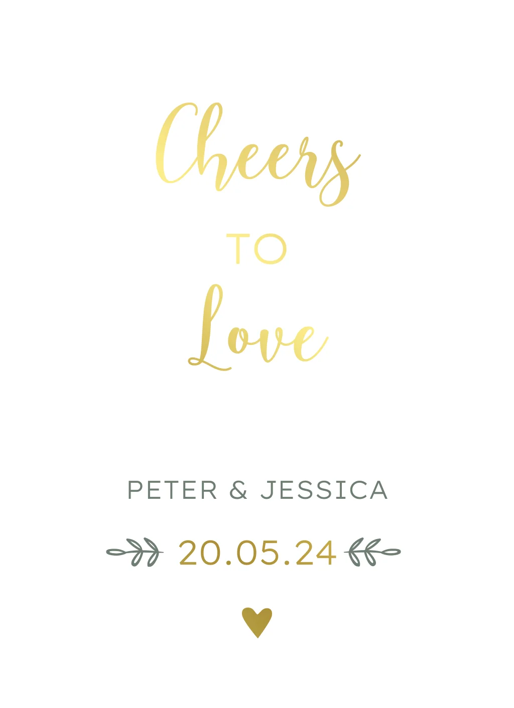 Wijnetiket voor op een fles als bedankje aan de gasten van jullie bruiloft. Formaat: staand 8x11 cm. Dit etiket hoort bij de trouwhuisstijl Shining Love.
