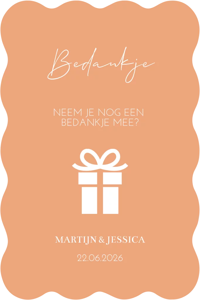 Ontwerp een kaart die je bij jullie bedankjes kunt neerzetten. Deze kaart is passend bij de trouwhuisstijl Lovely lila.
