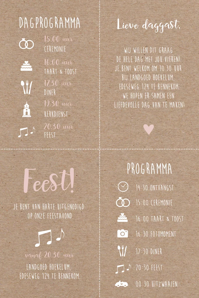 Dagprogramma om je gasten het programma te laten weten