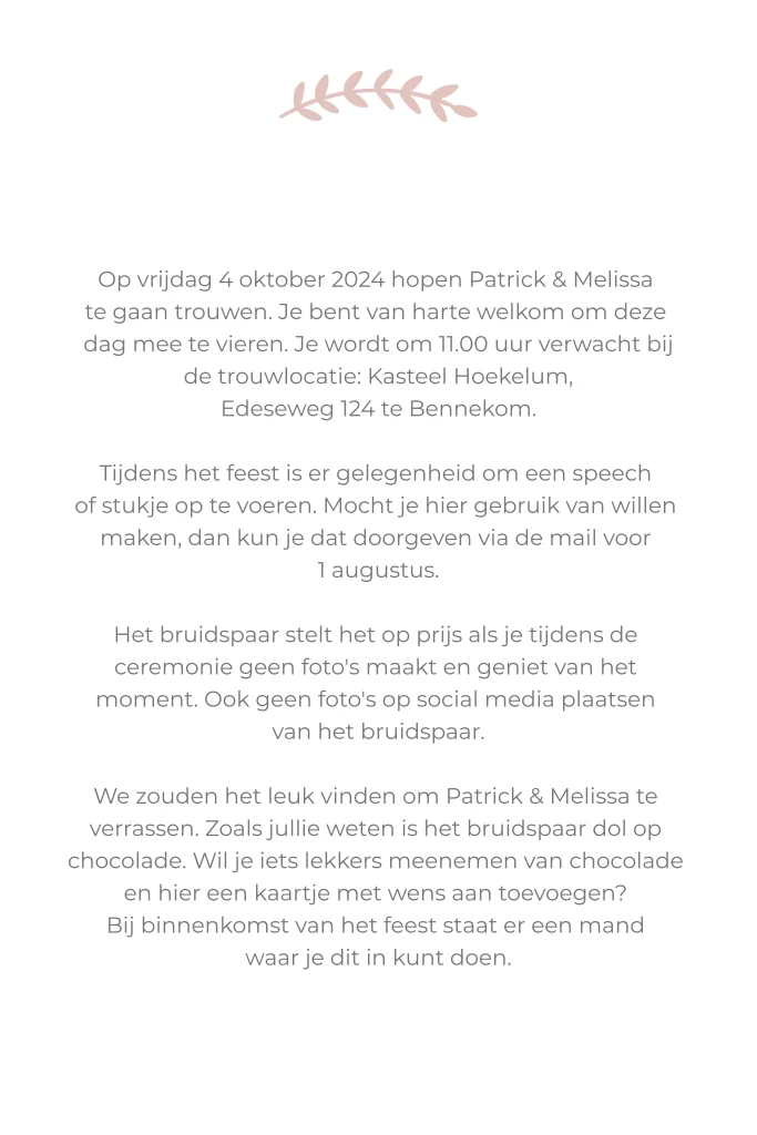 Details kaarten om te informeren over details van jullie bruiloft