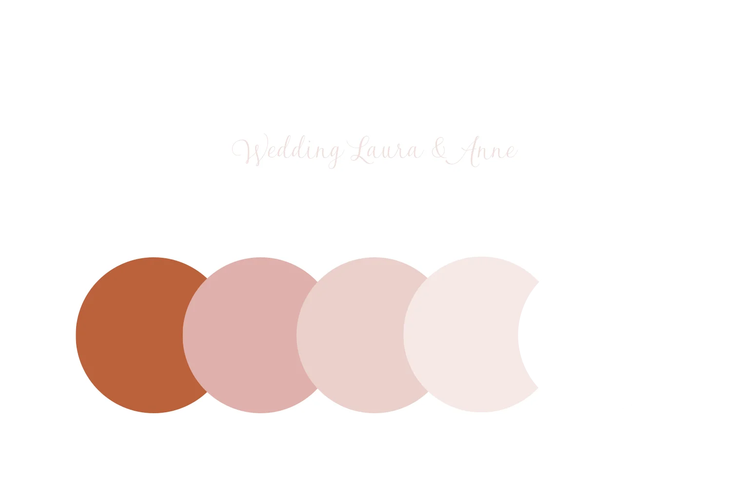 Bruiloft met themakleur? Voeg dan een dresscode kaartje toe met een kleurenschema met de gewenste tinten. Pas de kleur van de bolletjes nog naar wens aan! Druk dit kleine kaartje af op een formaat van 8,1 × 5,4 cm.