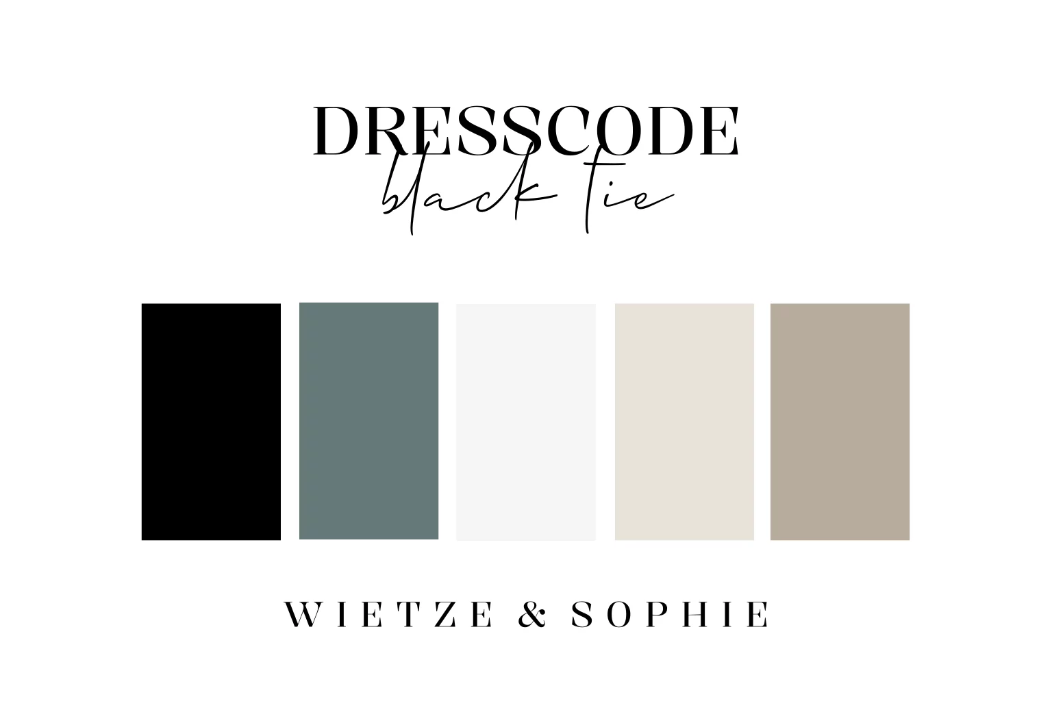 Modern dresscode kaartje voor bij de trouwkaart met beige en zwarte kleuren. Pas de kleuren zelf naar wens aan in de editor voor jullie eigen bruiloft. Druk dit kleine kaartje af op een formaat van 8,1 × 5,4 cm.
