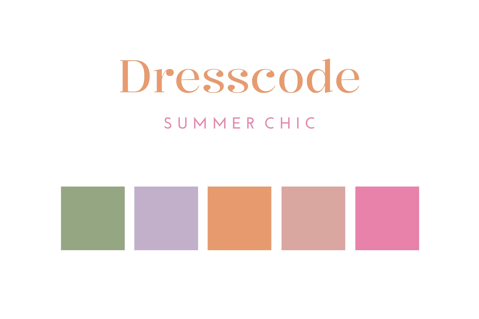 Voeg een dresscode kaartje toe aan jullie trouwkaart met een kleurenthema. Je kunt de kleuren nog naar wens aanpassen. Druk dit kleine kaartje af op een formaat van 8,1 × 5,4 cm.