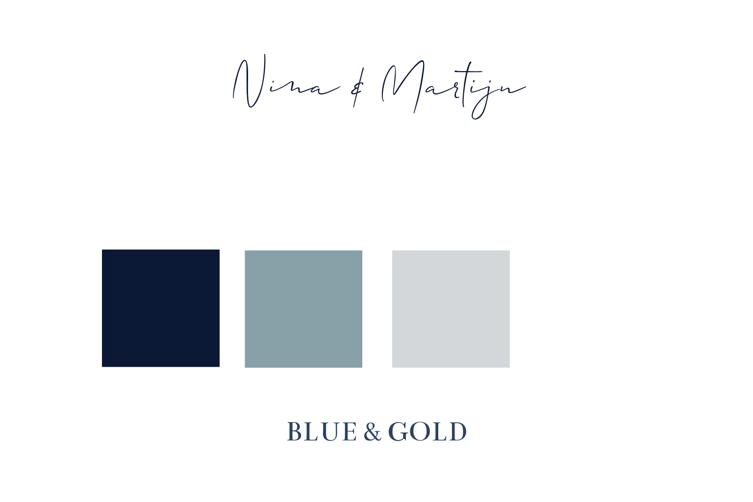 Dresscode kaartje met kleuren vierkantjes voor bij de trouwkaart. Pas in de editor de kleuren aan naar de themakleuren van jullie bruiloft. Druk dit kleine kaartje af op een formaat van 8,1 × 5,4 cm. Dit kaartje is passend bij de trouwhuisstijl Something blue.