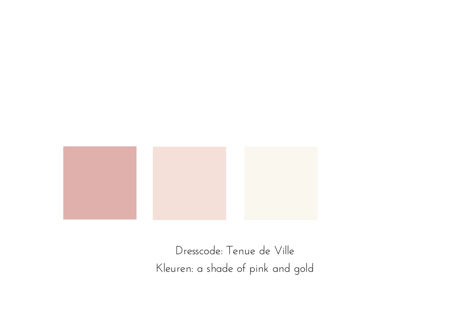 Dresscode kaartje trouwkaart kleuren modern roze goud
