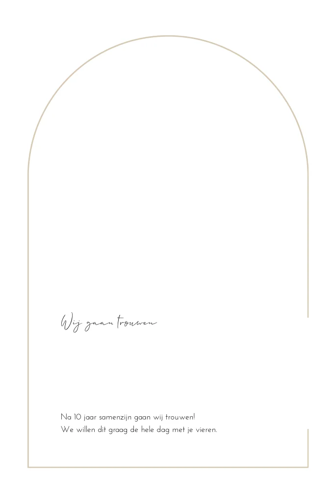 Moderne trouwkaart met boogvorm lijn en letters in goudfolie. Op de uitnodiging staat een trouwlogo met initialen. Vul jullie eigen initialen in met behulp van de editor en pas de kleuren nog naar wens aan.