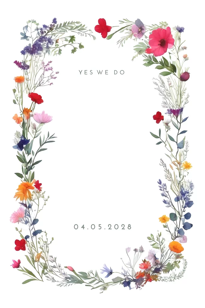 Romantische trouwkaart met gekleurde wilde veldbloemen in een dubbelgevouwen formaat. De kaart is afgewerkt met goudfolie en aan de binnenzijde staat een tijdlijn met de dagplanning en is er plaats voor meer informatie van jullie bruiloft.| Totaalprijs: 0 |