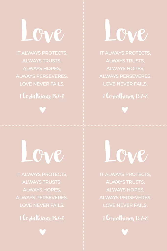Roze DIY-labels met een tekst om bij de trouwkaart te voegen. Je past de 4 labels zelf helemaal naar wens aan. Maak de labels in de kleur en stijl van jullie trouwkaart, zodat het helemaal op elkaar aansluit. Je knipt of snijdt de labels zelf nog uit. Bevestig ze met een mooi touwtje, lintje of een paperclip aan de trouwkaart. Wanneer je de labels afdrukt op een kaart van 17x11 cm krijg je 4 labels van 8,5x5,5 cm. Op de voorzijde staan snijlijnen die niet uitgeprint worden. De snijlijnen zijn dus op het definitieve ontwerp alleen zichtbaar op de achterkant. Zodat je de labels netjes uitknipt of snijdt.