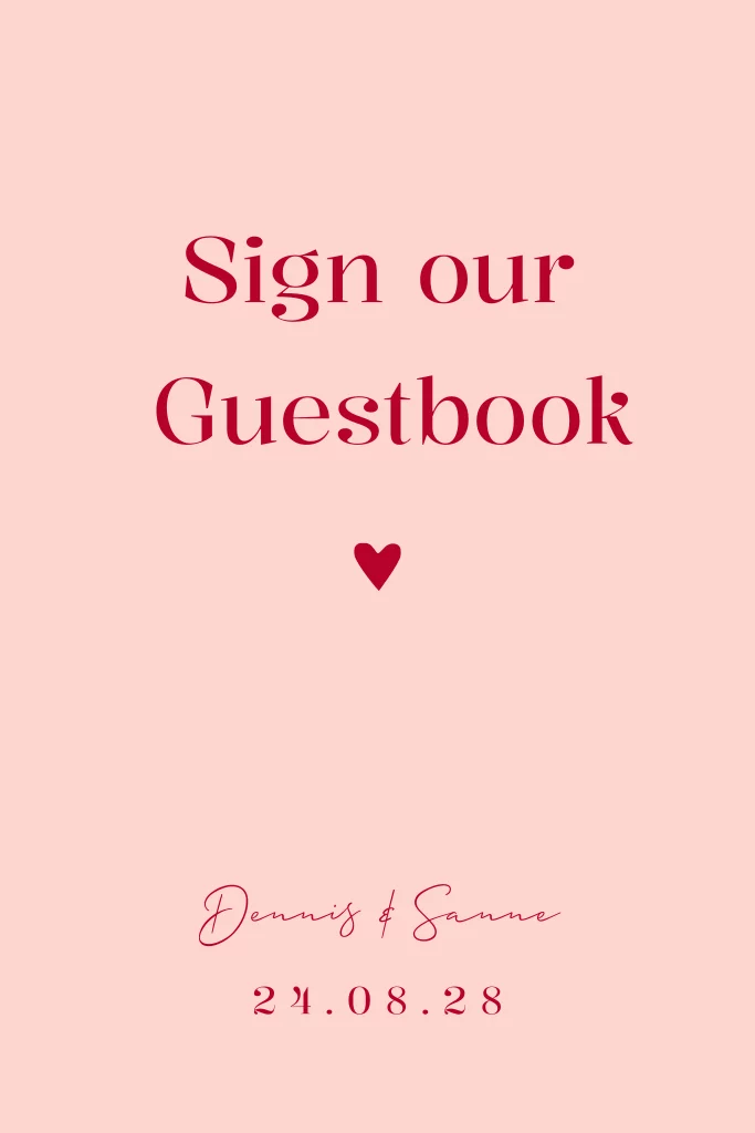Ontwerp een kaart die je bij jullie gastenboek kunt neerzetten. Deze kaart is passend bij de trouwhuisstijl Pink love.