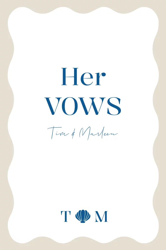 Modern geloftenboekje in een beige met blauwe kleur en golf vorm. Schrijf hierin jullie geloften voor op jullie bruiloft. Pas de kleuren aan naar die van jullie trouwkaart, zodat alles bij elkaar past! Versie: HER Vows