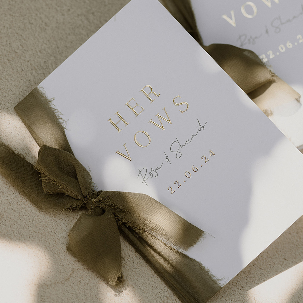 Een geloftenboekje met een italiaans tintje, passend bij de trouwhuisstijl Italian Vibes. Zo is al het drukwerk voor jullie bruiloft in dezelfde stijl! In dit boekje kun je jullie geloften voor tijdens de ceremonie zetten. Versie: Her Vows